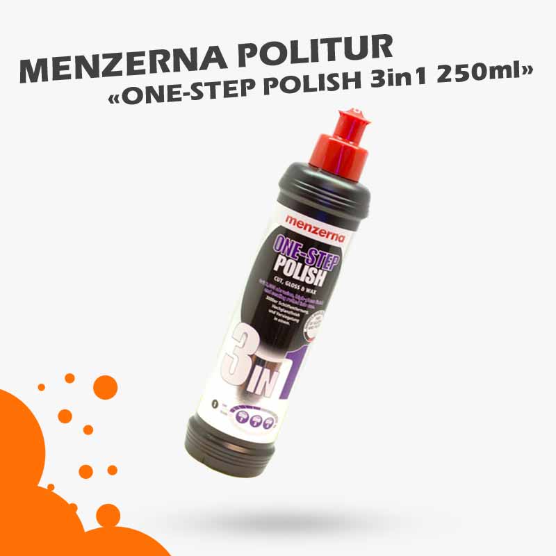 Menzerna 3in1: One-Step Polish, Hochglanz- Finish und Wachs in einem Produkt. 3in1 arbeitet wie eine mittlere Schleifpolitur und entfernt mit der Maschine Schleifspuren der Körnung 3000 und feiner. 3in1 entfernt zuverlässig Schlieren und Schatten, ist als Wachs mit rotativer, exzentrischer Poliermaschine oder per Hand zu verwenden.Highlight